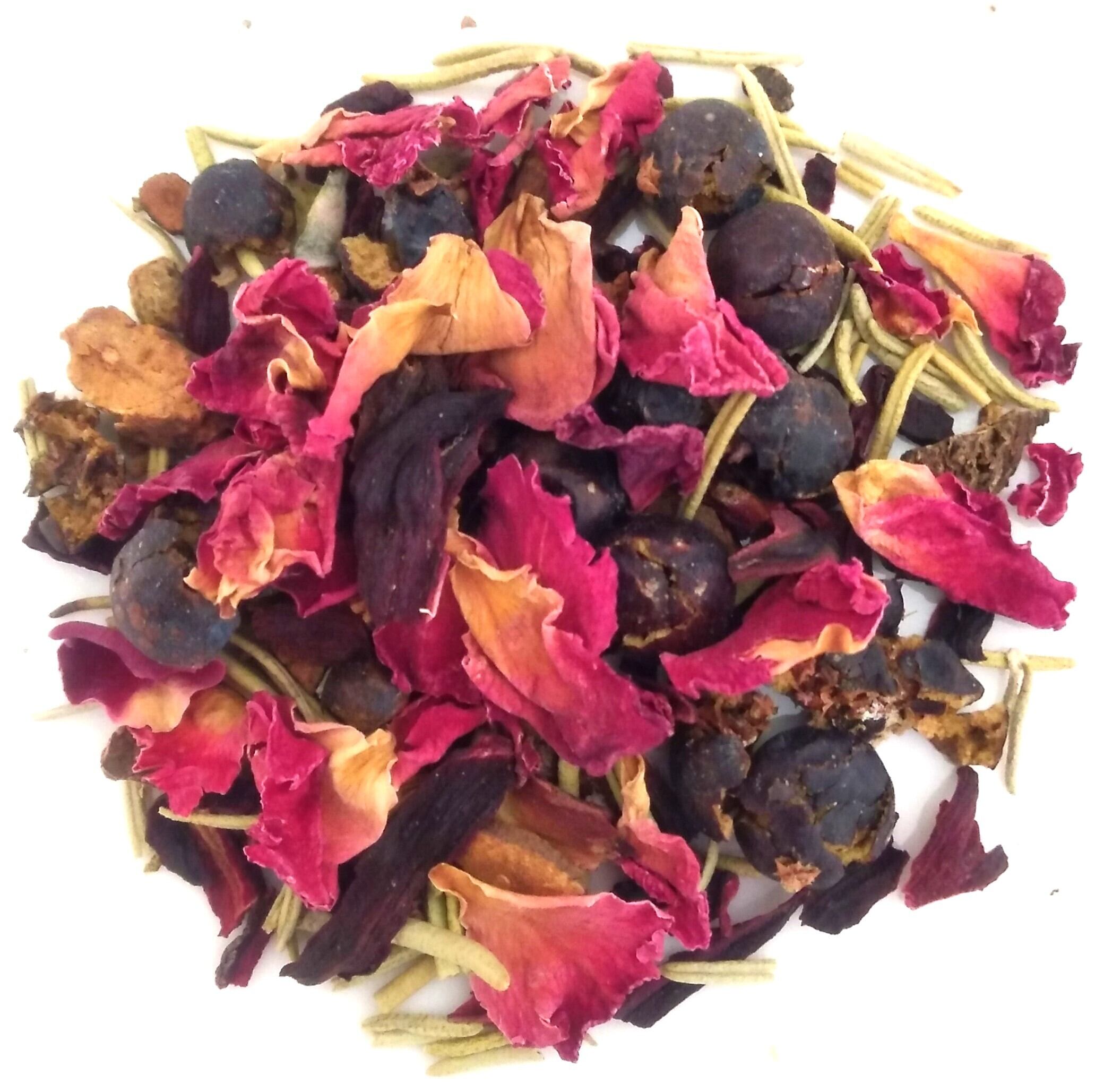 ジュニパー、ハイビスカス、ローズマリー、ダンディライオン、ローズ・レッド、ステビア