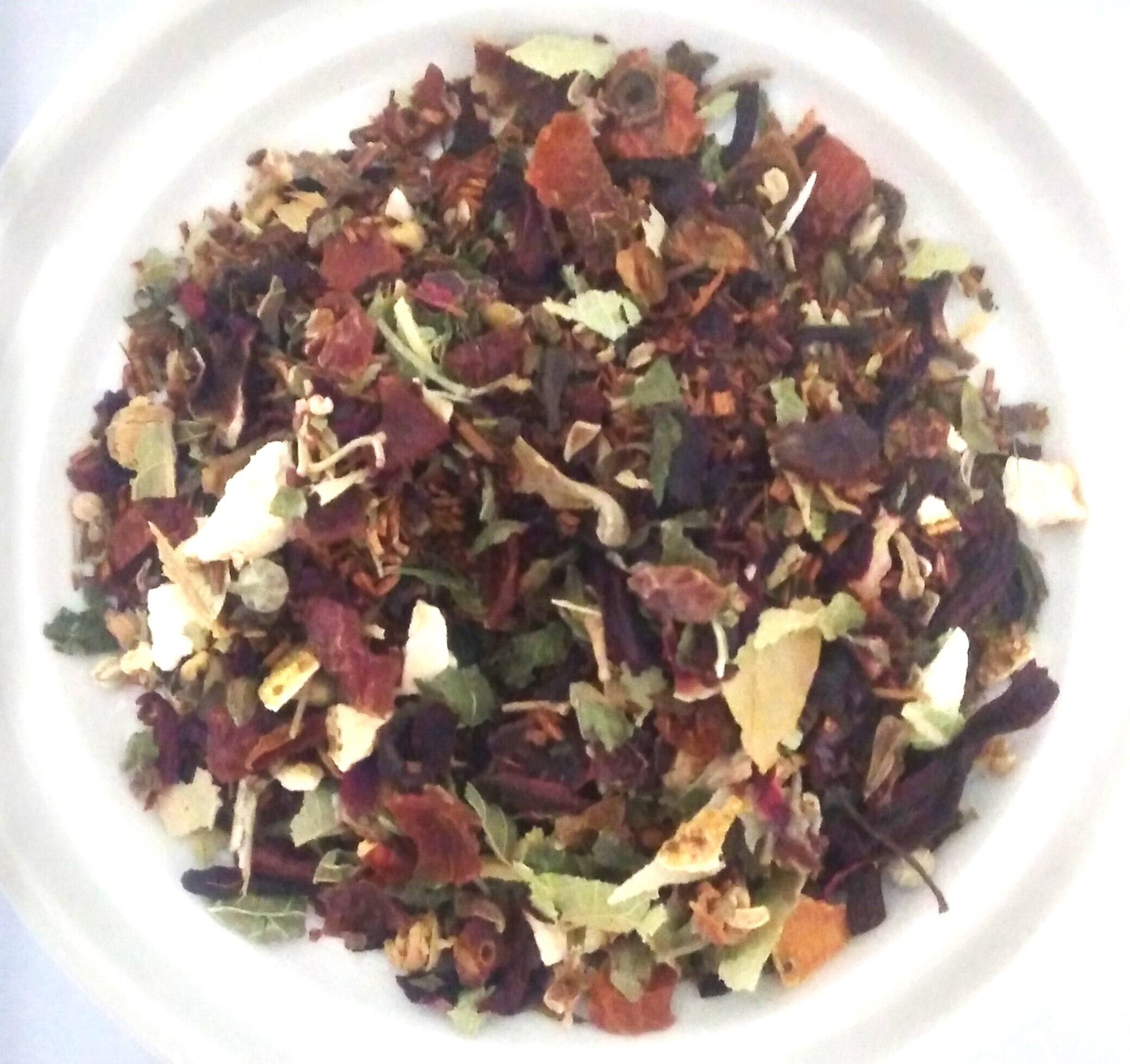 ルイボス、ローズヒップ、ハイビスカス、リンデン、レモンバーム、オレンジピール