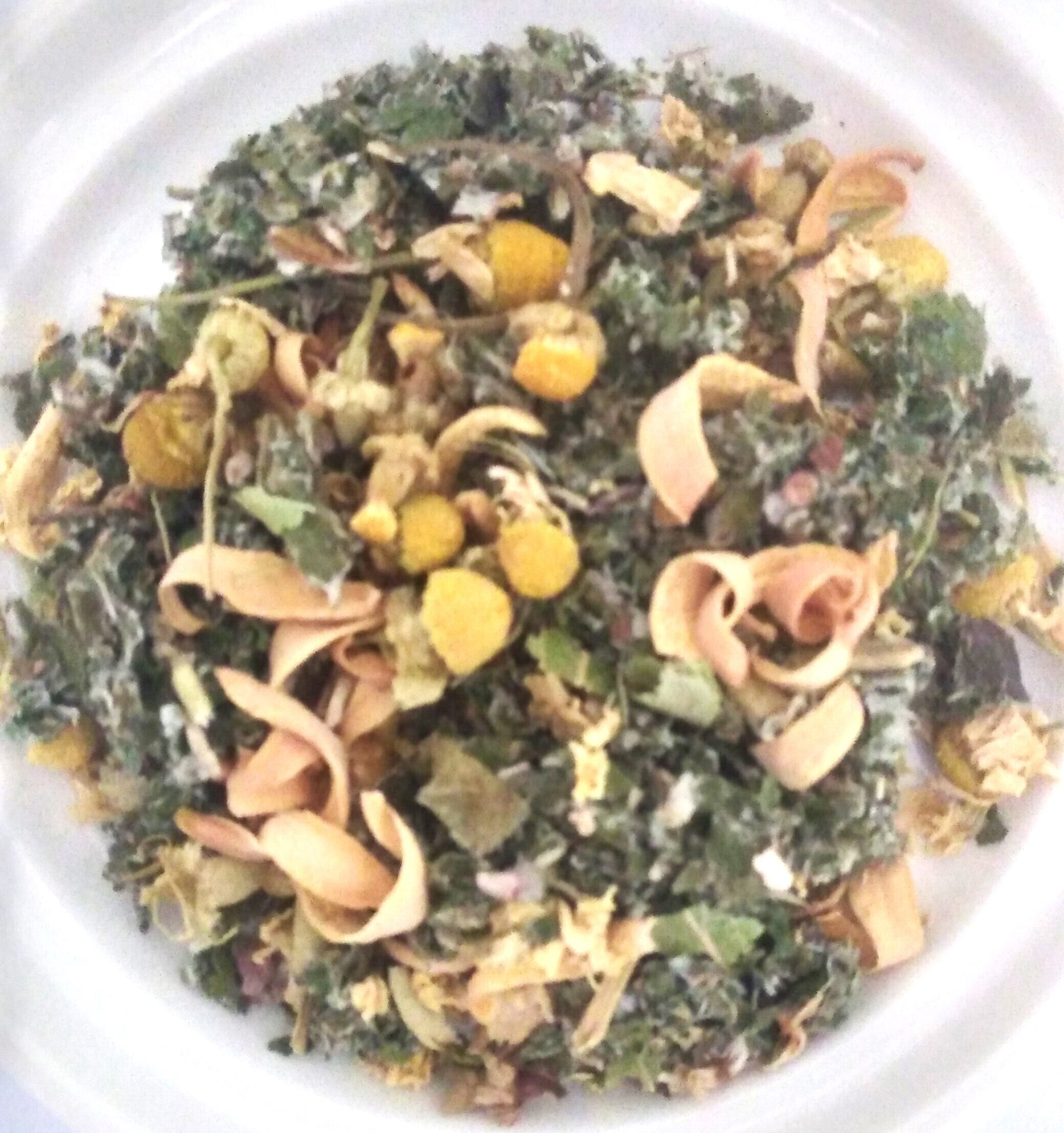 ラズベリーリーフ、リンデン、ジャーマン・カモミール、オレンジブロッサム、エルダーフラワー